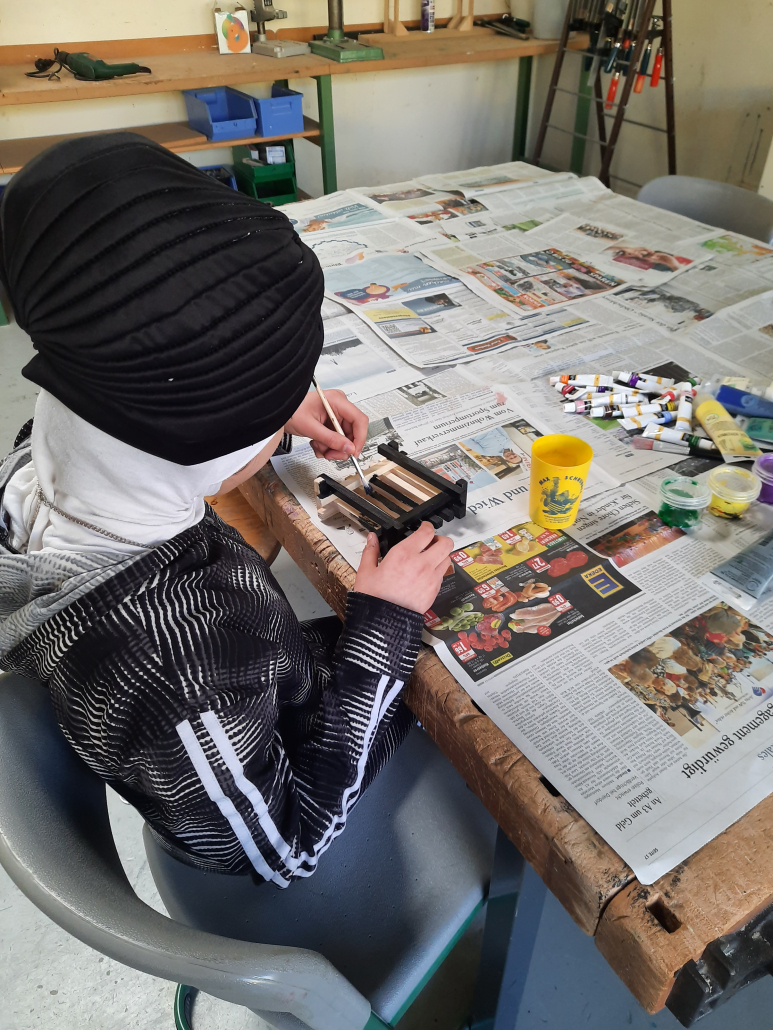 Die Schülerinnen und Schüler der Holz-AG unserer GTS haben mit Begeisterung einen Kerzenhalter hergestellt. Nur gesägt, geschliffen und geleimt und ganz ohne Nägel. Danach noch eine Oberflächenbehandlung und das gute Stück war fertig.