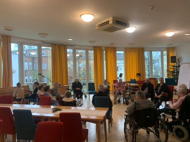 Auch die Bewohnerinnen und Bewohner des Seniorenzentrums dürfen sich freuen: Die Jugendlichen lesen vor, spielen Spiele, machen Gedächtnisübungen, geben kleine Klavierkonzerte und basteln liebevoll Weihnachtsbaumschmuck und Karten. Ein Austausch, der Jung und Alt bereichert!