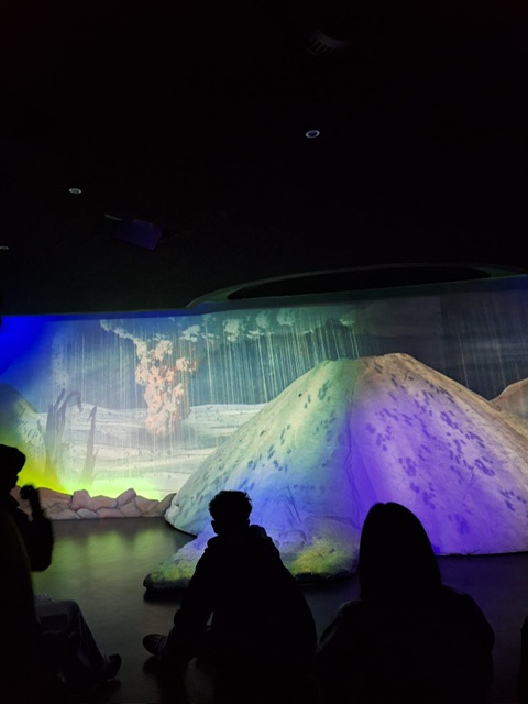 Rund eine Stunde lang tauchten die Schülerinnen und Schüler in die Welt der Feuerberge ein. Besonders beeindruckend war die multimediale Show, die Vulkanausbrüche der Eifel realitätsnah erlebbar machte. Mithilfe perfekt abgestimmter Animationen, eindrucksvoller Licht- und Toneffekte sowie Wind- und Bewegungssimulationen entstand das Gefühl, mitten in einem echten Ausbruch zu stehen.