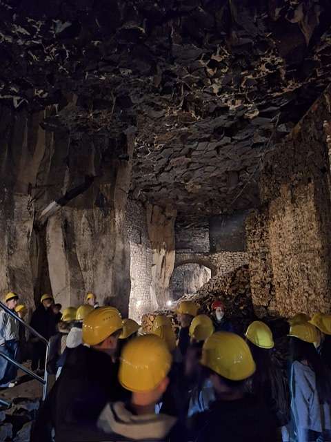 Betreut von Frau Janßen-Stieber und Herrn Neumann erkundeten die Klassen in zwei Gruppen nicht nur den Lava-Dome, sondern auch den angeschlossenen Basaltkeller.