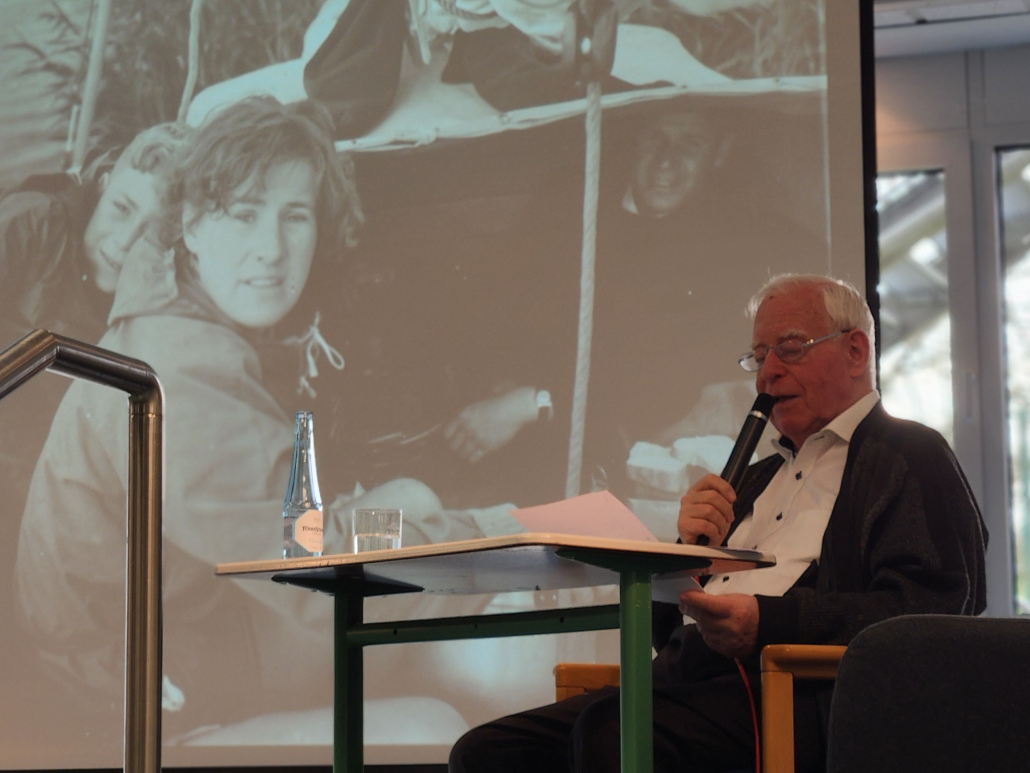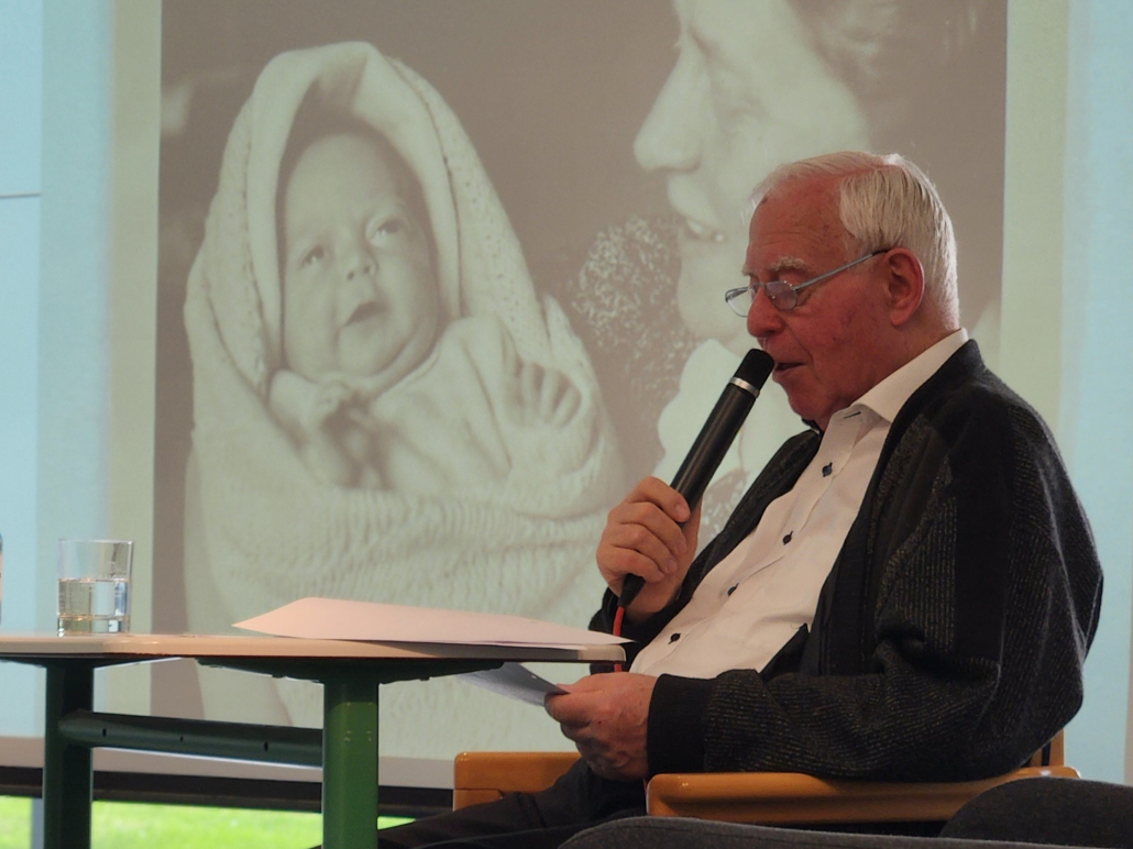 Er schilderte seinen Lebensweg von seiner Geburt im Jahr 1941 bis in die heutige Zeit. Besonders bewegend war dabei die Geschichte seiner Pflegeschwester, die für ihn zur Pflegemutter wurde. Seine jüdischen Eltern waren bereits vor den Nationalsozialisten in die Niederlande geflohen. Dort kam er als Frühgeburt zur Welt und verbrachte die ersten sieben Wochen im Brutkasten. Anschließend wurde er bei einer befreundeten Familie untergebracht, während seine Eltern verhaftet wurden und mehrere Lager durchleiden mussten.